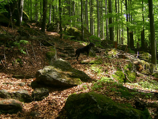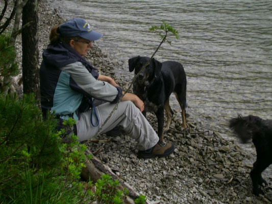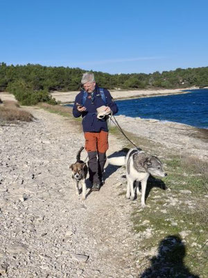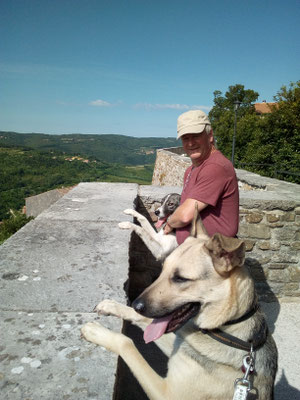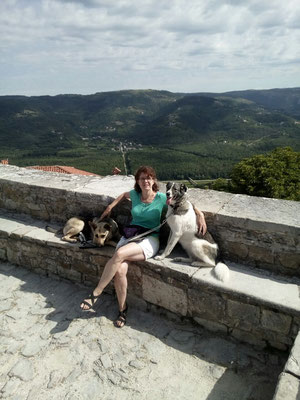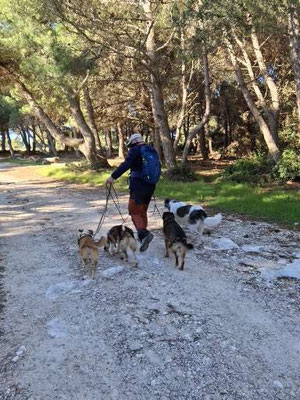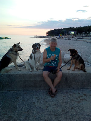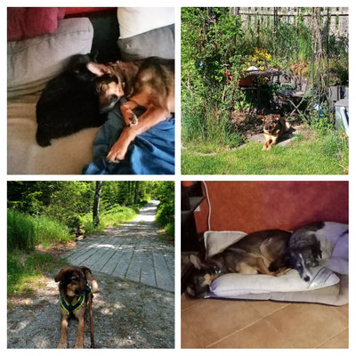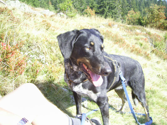Wie schon erwähnt, kam Loona als Dritthund zu uns, damit immer jemand bei Rhana ist, wenn ich mit Bella zum Tierarzt musste. Besagte Freunde kannte bereits das Tierheim Snoopy in Pula/Kroatien. Sie hatten von dort selber schon den einen oder anderen Hund geholt und nur gute Erfahrungen gemacht. Also wandten wir uns auch an Snoopy mit der Frage ob sie einen Hund nicht größer als max. 30 cm, ruhiges Gemüt aber wanderfreudig hätten. Mit diesen Erwartungen hatten wir eigentlich keine große Hoffnung das sie kurzfristig einen Hund anbietet könnten. Doch zu unserer Überraschung kamen Infos und Bilder von Loona (damals hieß sie noch Sally). Unsere Freunde fuhren zufällig kurz drauf nach Pula in Urlaub und machten einen Abstecher zu Snoopy. Da sie unsere Hunde kannten, machten sie sich ein Bild von Loona und waren der Meinung das sie sehr gut zu uns passen würde. Wir hatten einige Wochen später Urlaub und verbrachtet diesen dann auch in Kroatien in einem Ferienhaus um auszutesten wie es mit Rhana und Bella funktionieren würde. Die drei haben sich von Anfang an so toll miteinander verstanden. Und so fuhr Loona mit uns nach Hause. Sie ist auch jetzt noch der Ruhepol in der Gruppe. Sie war von Anfang an problemlos. Auch mit Loona macht Tommy Maintrailling und Fährtentraining.