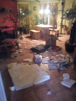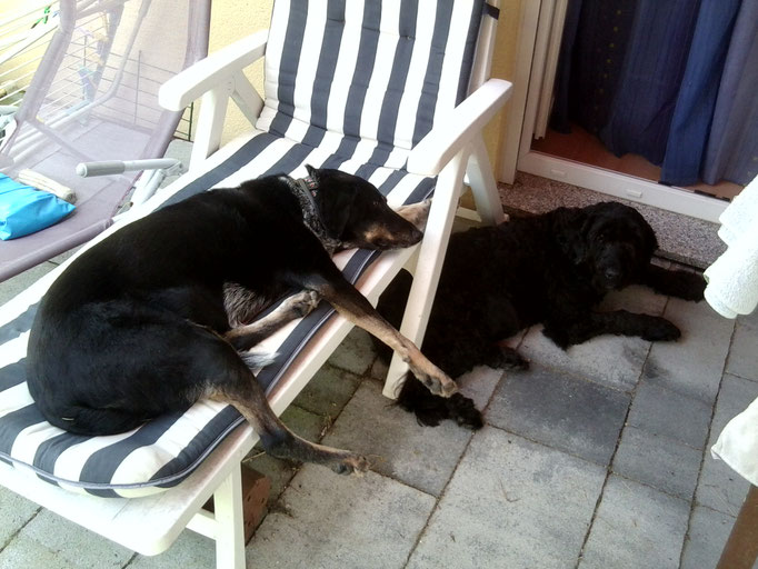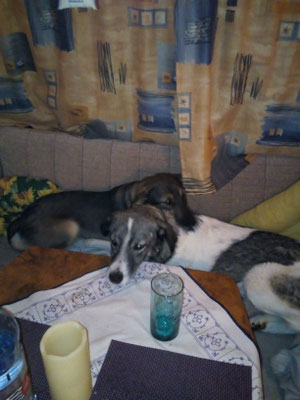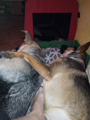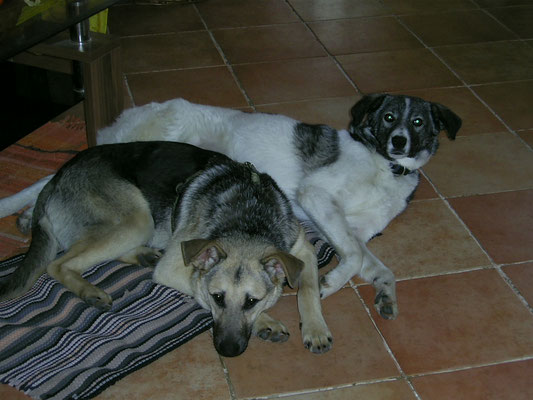 Mit Jessy gingen Rhana und Bella auch im neuen Zuhause sehr souverän um. Doch mit unserer Wohnungseinrichtung leider nicht. :-( Die Couch wurde komplett zernagt, div. Fussbodenleisten mussten dran glauben, Fernsteuerung und Kabel auch.