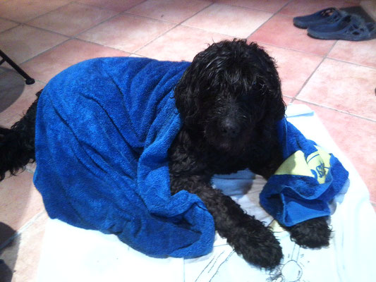 Baustelle 2: Scheinbar wurde ihr von klein auf nicht beigebracht, das Bürsteln was tolles ist. Irgendwann hat sich gelernt, wenn sie schnappt hört das Zippen auf. Die letzte Pflegestelle hat sie zweimal im Jahr zum Scheren zum Tierarzt gebracht um sie unter Narkose von Filz befreien zu können. Das haben wir dann erstmal auch so beibehalten. Nach zwei Jahren haben wir dann aber mit unserer Hundefriseuse entschieden es ohne Narkose zu versuchen. Unsere Hundefriseuse ist sehr einfühlsam auf Jessy eingegangen. Es hat zwar lange gedauert und viele Kilos an Leckerlies gebraucht. Ab nach fast drei Jahren konnten wir Jessy problemlos scheren und frisieren.