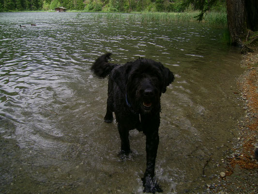Volta war der erste Hund von Tommy und kam aus mit einem halben Jahr aus einem Tierheim in Frankreich zu Tommy. Volta und ich traten fast zeitgleich ins Leben von Tommy. Unter der Woche ist Volta immer im LKW von Tommy mitgefahren. Am Wochenende musste Volta dann ihr geliebtes Herrchen mit mir teilen. Was ihr nicht immer gefallen hat, aus Eifersucht (wenn es sowas bei Hunden gibt) hat sie dann meine Schuhe angeknabbert. Das hat sich aber nach unserem Zusammen ziehen schnell gelegt. Mit Volta haben wir mit Maintrailling angefangen. Volta verstarb mit 11 Jahre leider nach einer Milztumor OP an einem Blutgerinnsel.